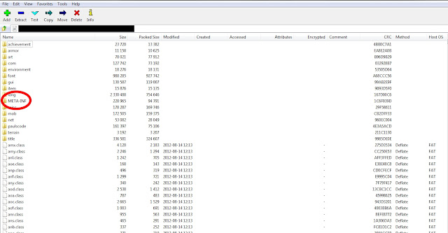 9. A window like the one below should appear. Look for a folder called 'META-INF' and delete it. DO NOT DELETE ANY OTHER FILES.
